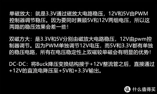 一方面+12V、+5V和+3.3V的输出彼此独立,稳压效果更好;另一方面正因为+5V和+3.3V都取电于+12V,所以+12V的功率就无限逼近额定功率。