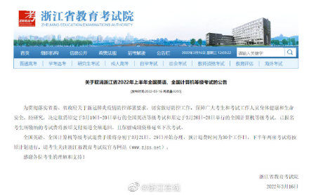 摘要:刚刚,浙江省教育考试院发出通知浙江省2022年上半年全国英语、全国计算机等级考试取消。 具体内容如下:为贯彻落实省委、省政府关于新冠肺炎疫情防控部署要求,切实做好防控工